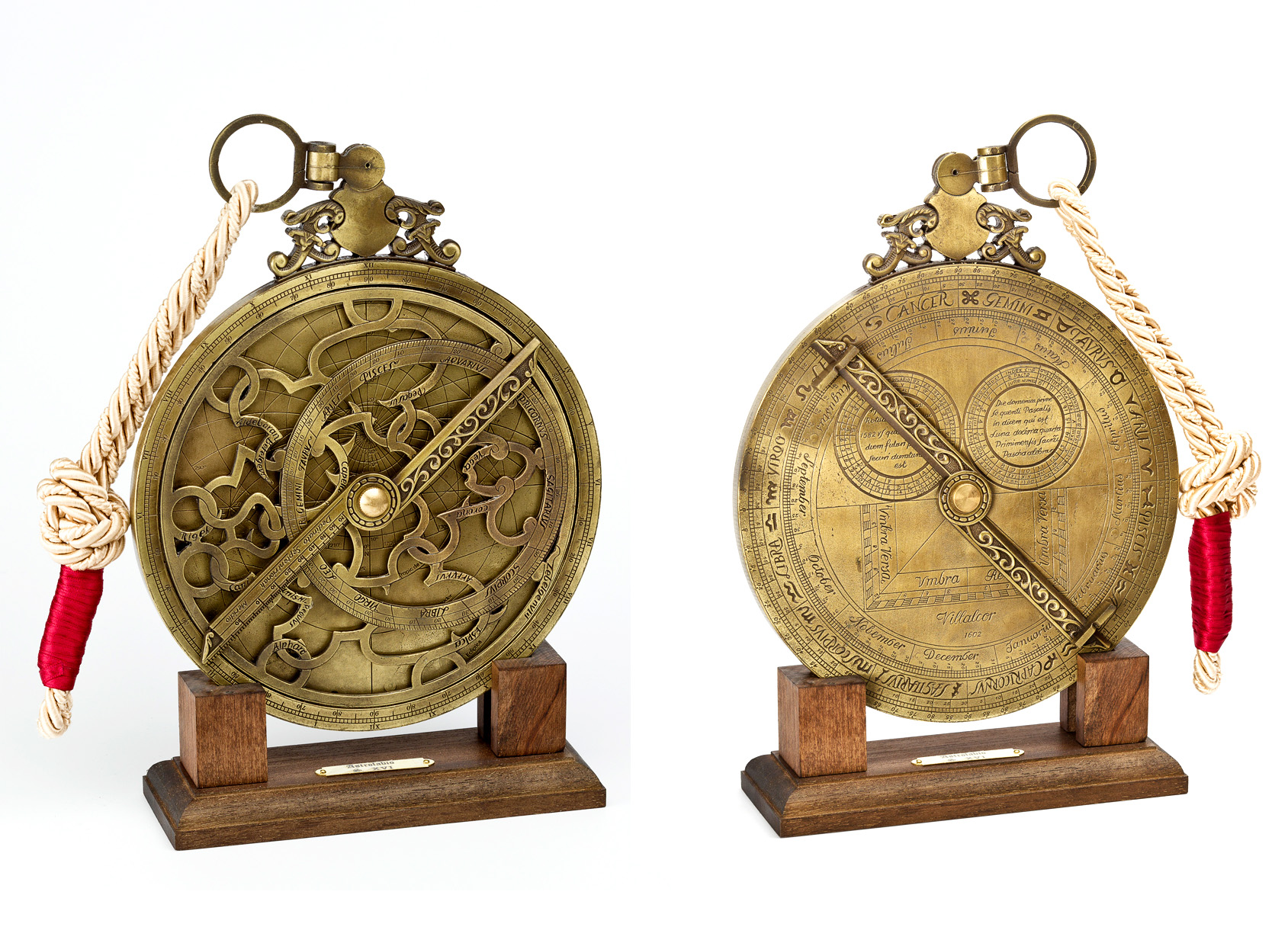 Upea suuri astrolabi on tehty hollantilaisen 1500-luvulla eläneen kuuluisan instrumenttivalmistaja Gualterius Arseniuksen astrolabin pohjalta. Astrolabin metallirunko on päällystetty messingillä, ja sillä on tukeva jalopuinen jalusta. Täysin toimivan laitteen mukana on lyhyt historiikki tästä tähtitieteen matemaattiseksi jalokiveksikin kutsutusta instrumentista sekä käyttöohjeet englanniksi. Astrolabi toimitetaan kauniissa lahjarasiassa. Kiekon halkaisija 20 cm ja paksuus 1,2 cm.
