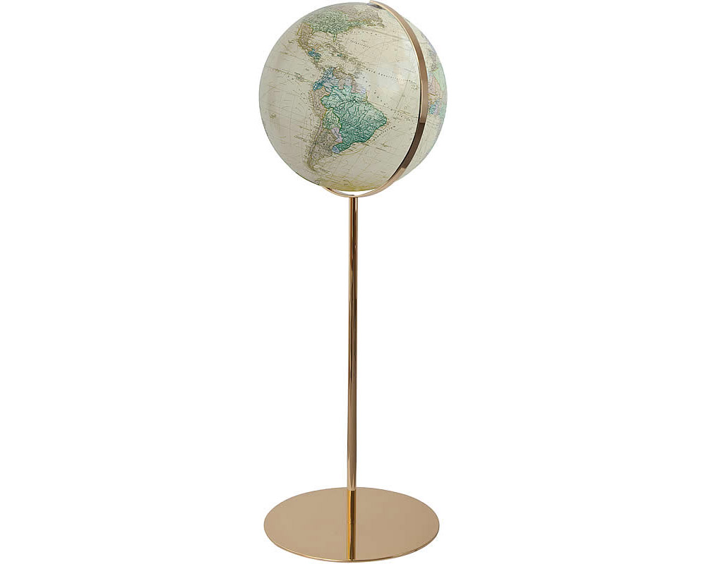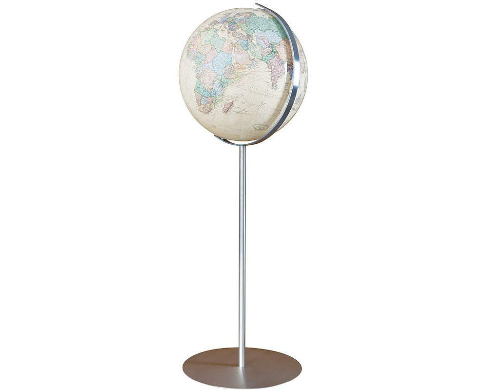 Kaunis valaistu lattialla seisova karttapallo, jossa yhdistyy tyylikkäästi antiikkikarttapallon tunnelma ja moderni muotoilu. Suuren kokonsa ansiosta karttapallon tietoja on helppo lukea. Olympia-karttapallon erikoisuutena on, että siihen on merkitty kylmät ja lämpimät merivirrat sekä käytetyimmät laivareitit. Toimii myös herkkänä lämminsävyisenä tunnelmavalaisimena hämärässä tilassa. Selkeälinjainen jalusta ja meridiaani vaihtoehtoisesti terästä tai kiiltävää messinkiä. Pallon halkaisija 40 cm, kokonaiskorkeus 120 cm. Toimitusaika noin 2-3 viikkoa.