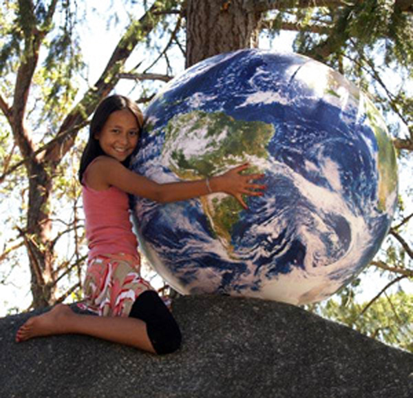 Vaikuttava maapallo, halkaisijaltaan 100 cm. Pallon kuva perustuu satelliittikuviin, joten se on kuin Maan pienoismalli. Pallo kestää pelit ja leikit ja on erinomainen julkistiloihin, festareille, konsertteihin sekä opetus– ja havaintovälineeksi. Kaupunkien valot hohtavat pimeässä. Mukana 20–sivuinen tietopaketti Maasta, sisältää myös runsaasti ideoita peleiksi, leikeiksi ja tutkimusretkiksi Toimitusaika noin 3 viikkoa.