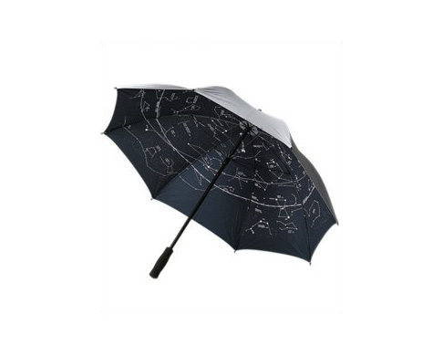 Ulkopinta hopeinen, sisällä mustalla pohjalla oikea tähtikartta. Automaattimekanismi, lasikuituvarsi, myrskyjousitus -kaiken kaikkiaan tukeva ja näyttävä varjo. ”Pilvisen sään havainnointiväline”, ”pienoisplanetaario”on joka tähtiharrastajan MUST. Alnilamin suosituin tuote kautta aikojen.